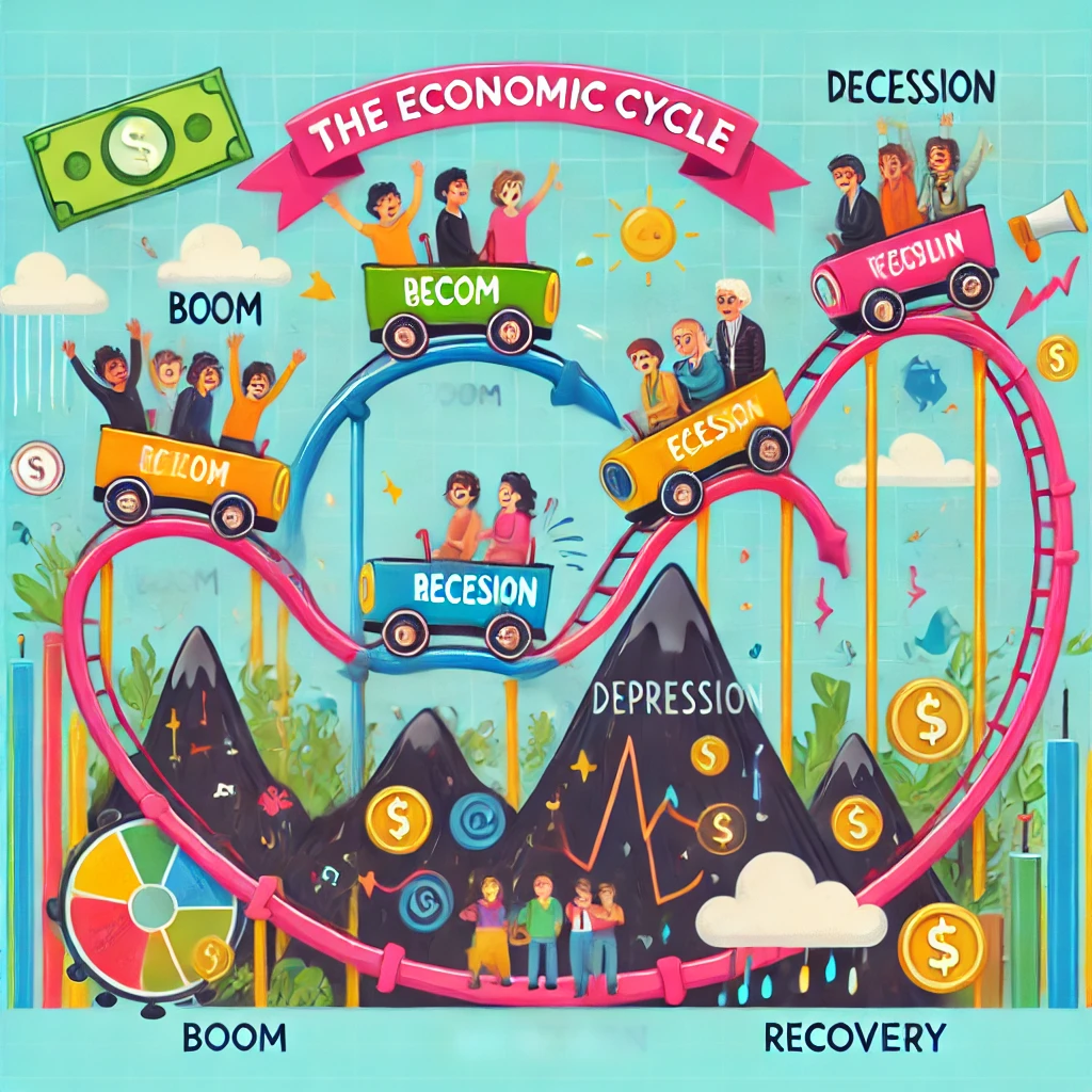 경제는 늘 일정하지 않습니다. 호황(Boom), 후퇴(Recession), 불황(Depression), 회복(Recovery)라는 4단계를 반복합니다.