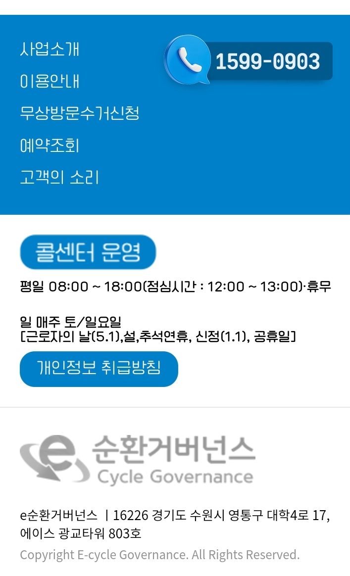1599-0903에 전화 한 통이면, 방문 수거부터 재활용까지 모두 무료로 해결할 수 있습니다.